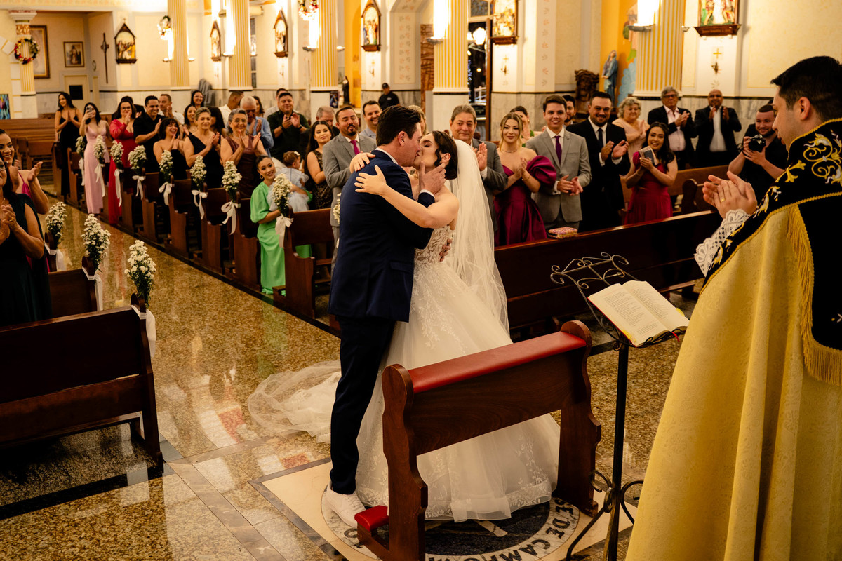 O grande dia da Camila e do Cleiton foi simplesmente perfeito! A cerimônia aconteceu na majestosa Catedral São José, em Campo Mourão, trazendo toda a emoção e beleza desse momento único. Com uma celebração elegante e repleta de sentimentos, foi impossível não se emocionar com a troca de olhares e votos desse casal tão gente boa.